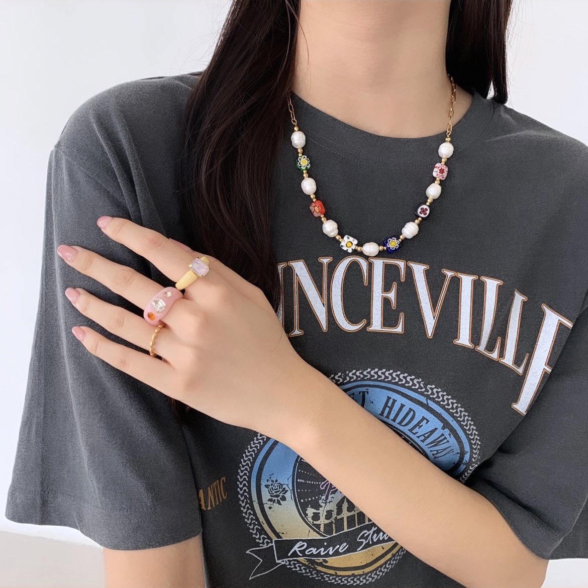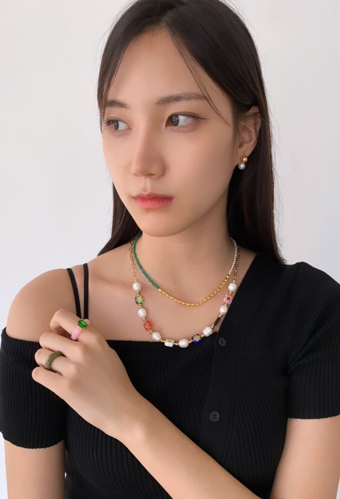 반체인 멀티 진주 비즈 목걸이