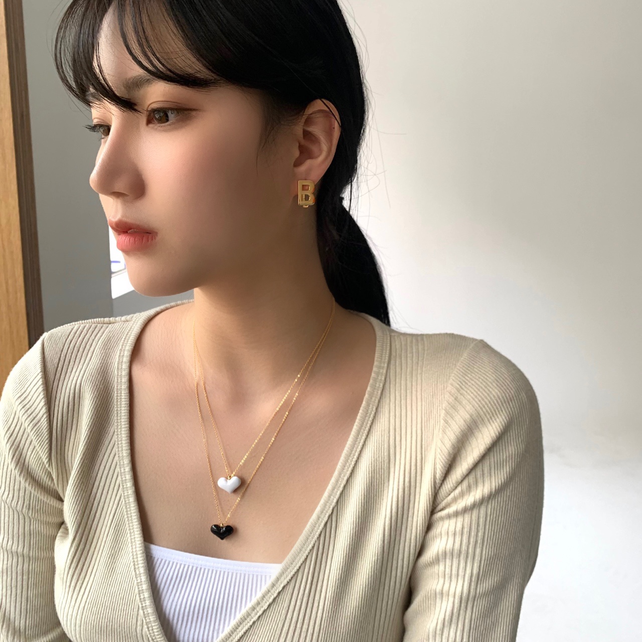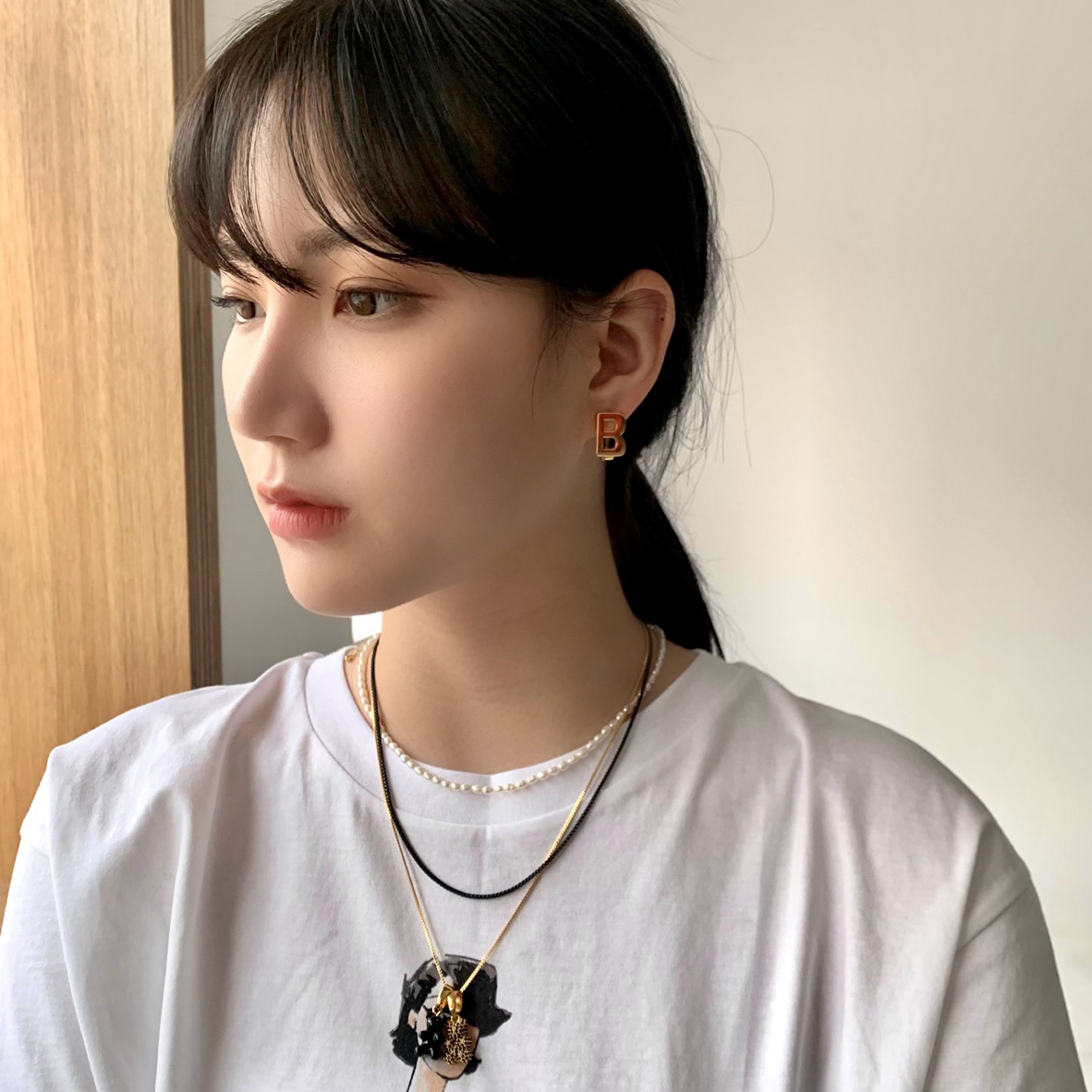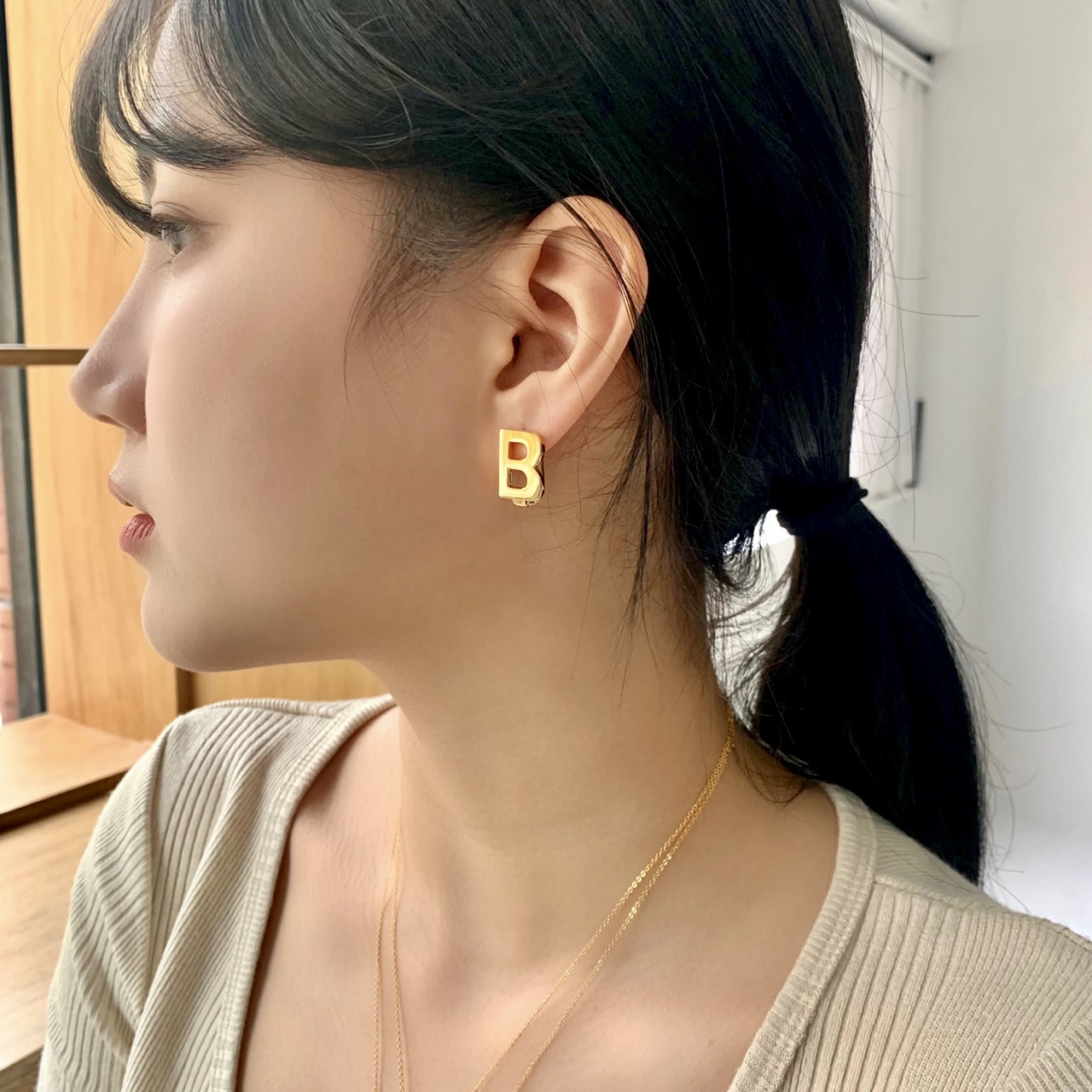 B로고가 있는 귀걸이는