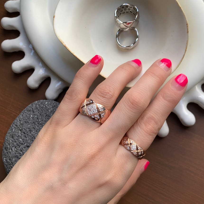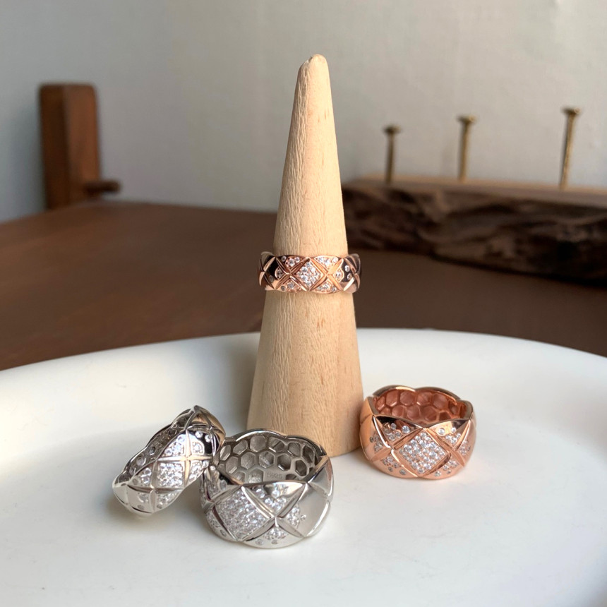 2. 라지 퀼팅 큐빅링반지 / 옵션1. 미듐 퀼팅 큐빅링반지