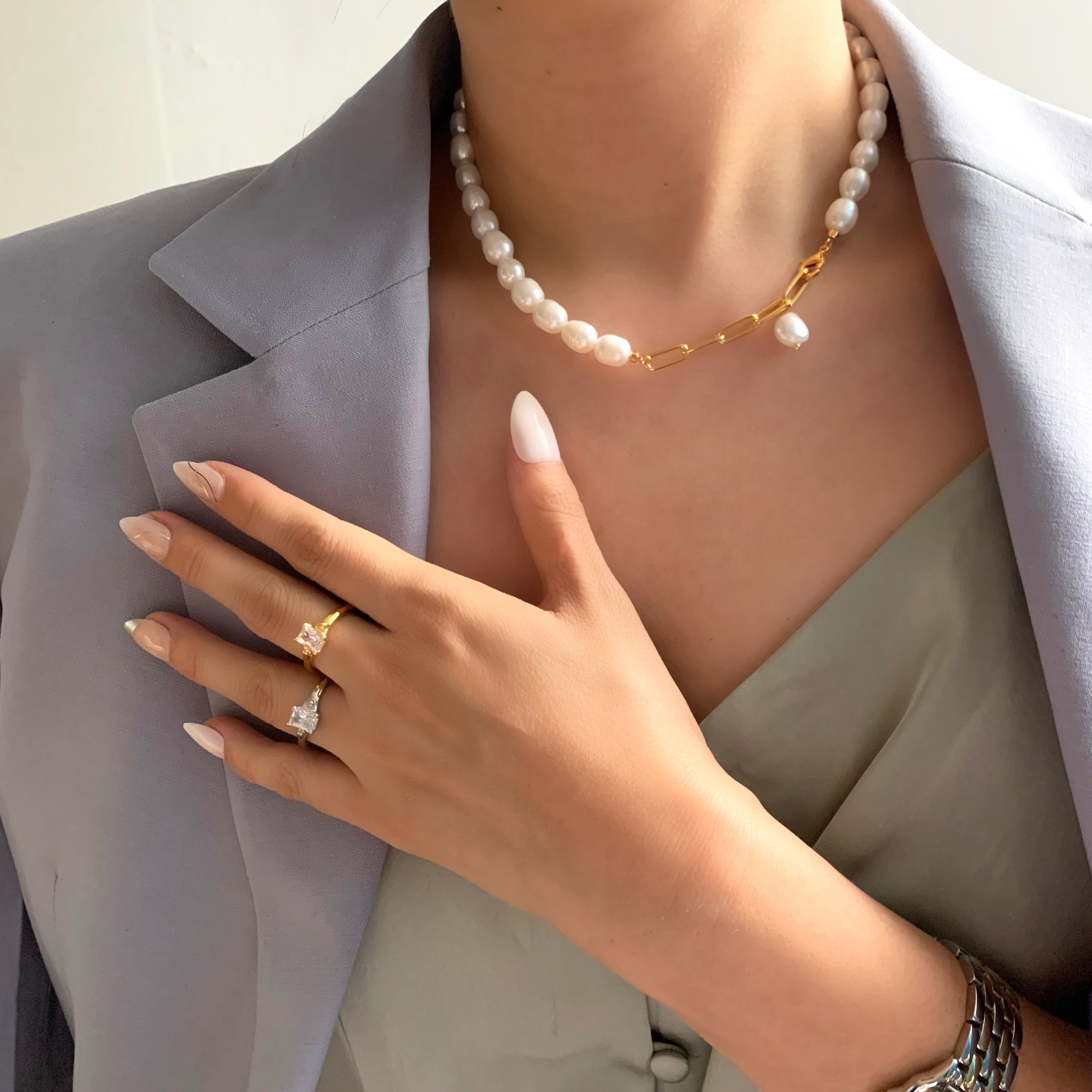 옵션4. 지그재그 담수진주 목걸이