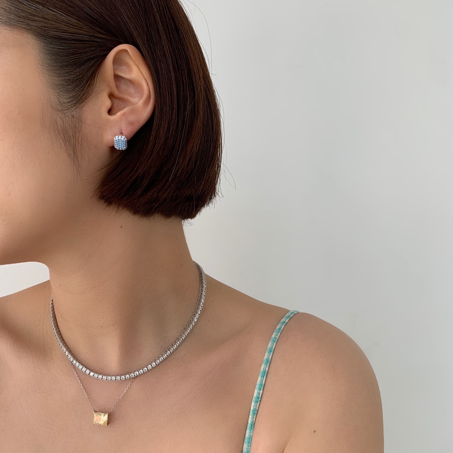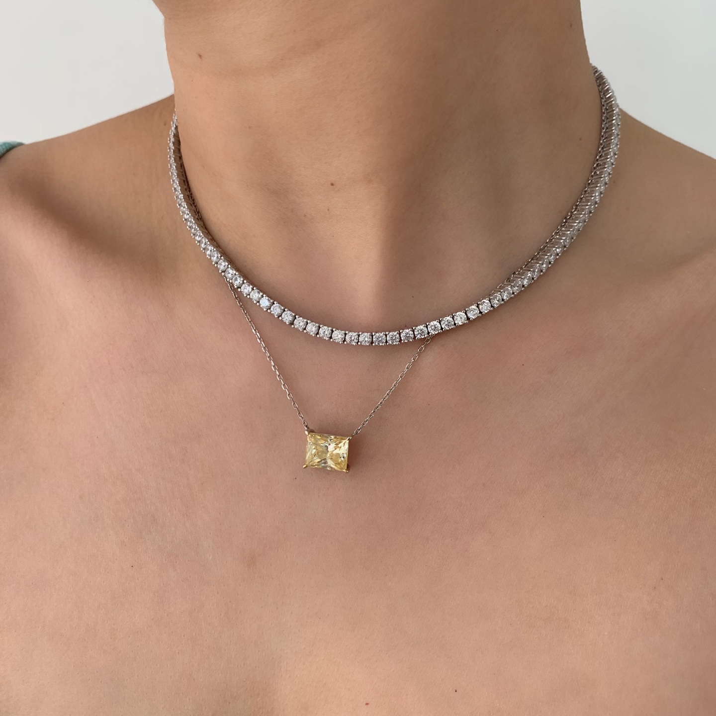사진 삭제3mm 스톤 테니스목걸이착용